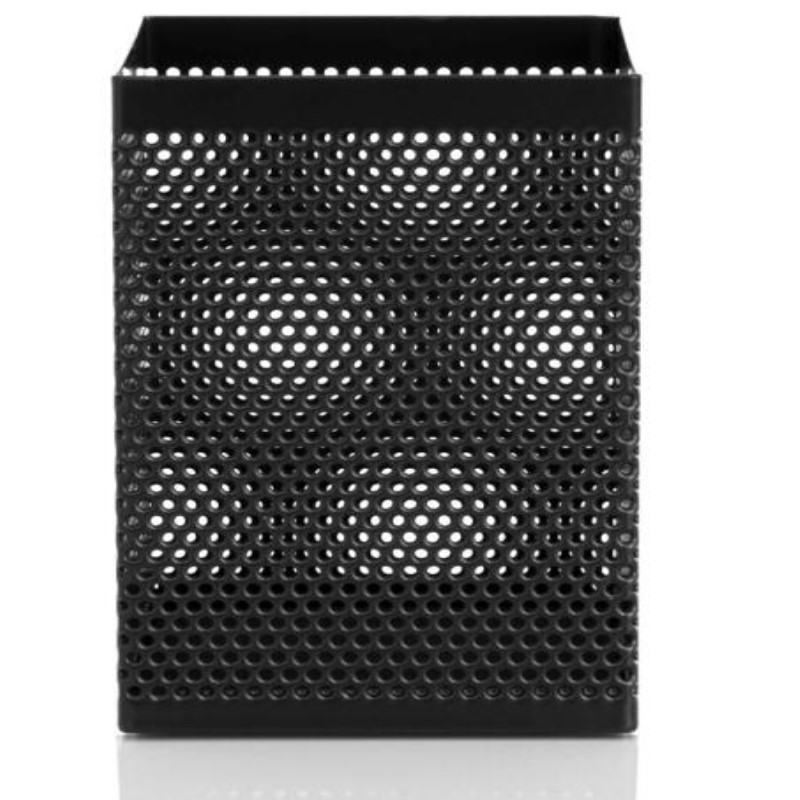 得力DELI 908 笔筒 网纹方形 金属 70*70*100mm 黑色