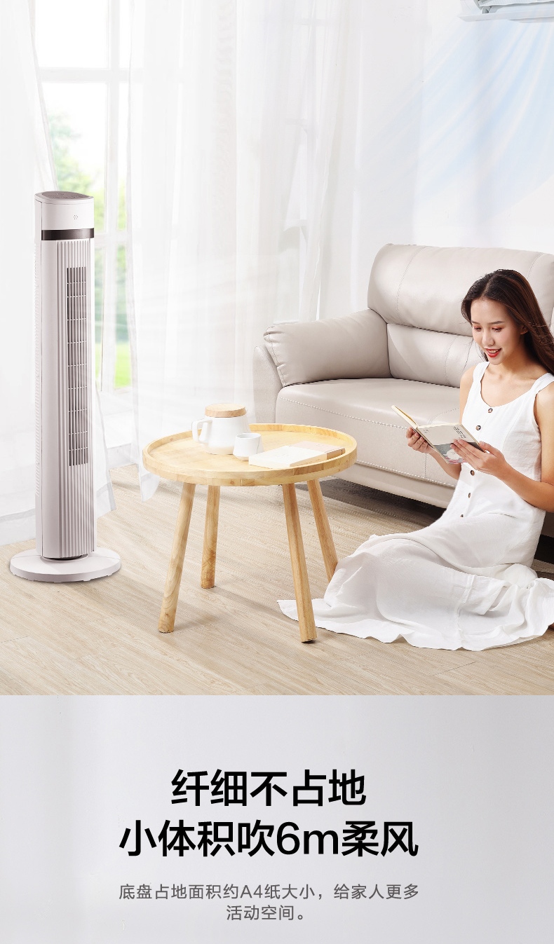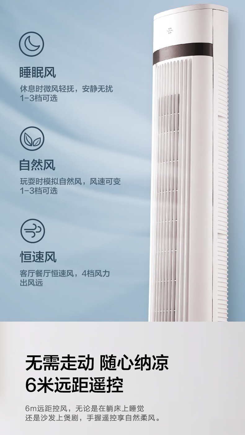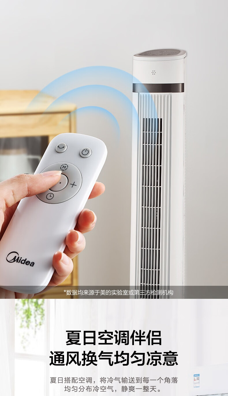 美的/Midea ZAE09MA 风扇 塔扇立式摇头定时远程控风轻声占地小落地扇节能无叶扇