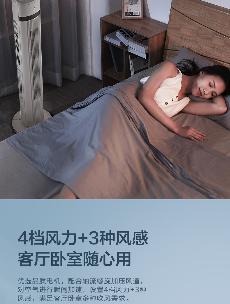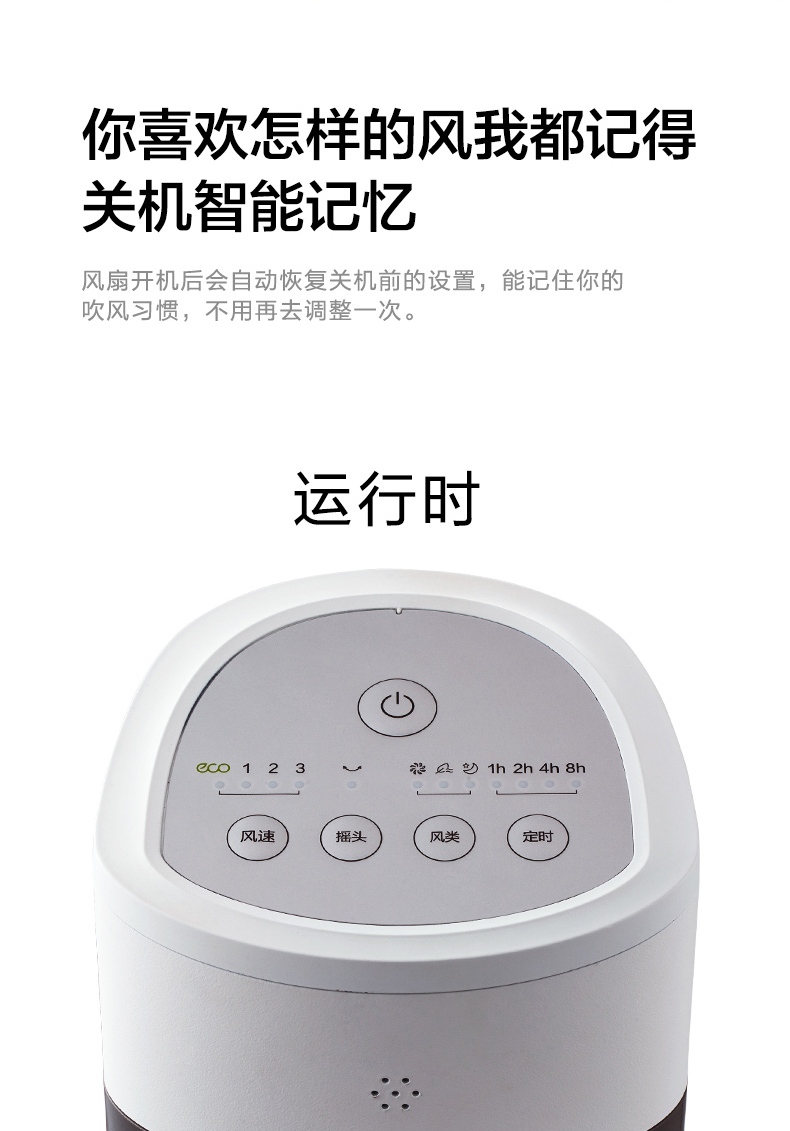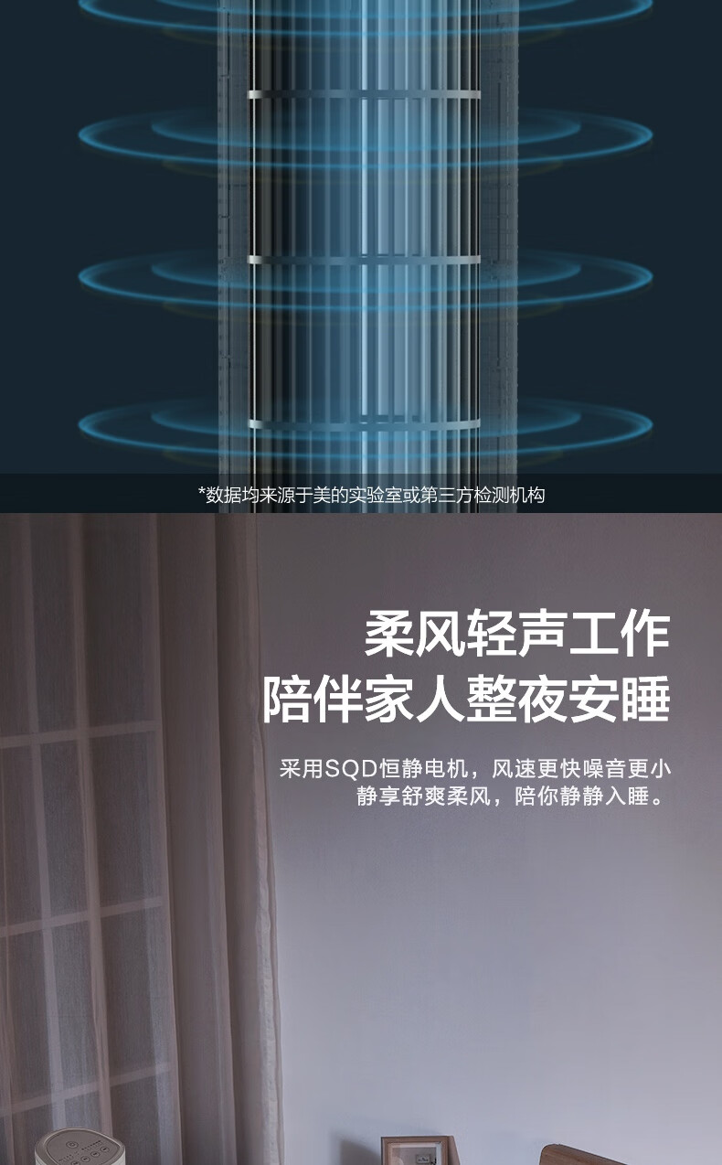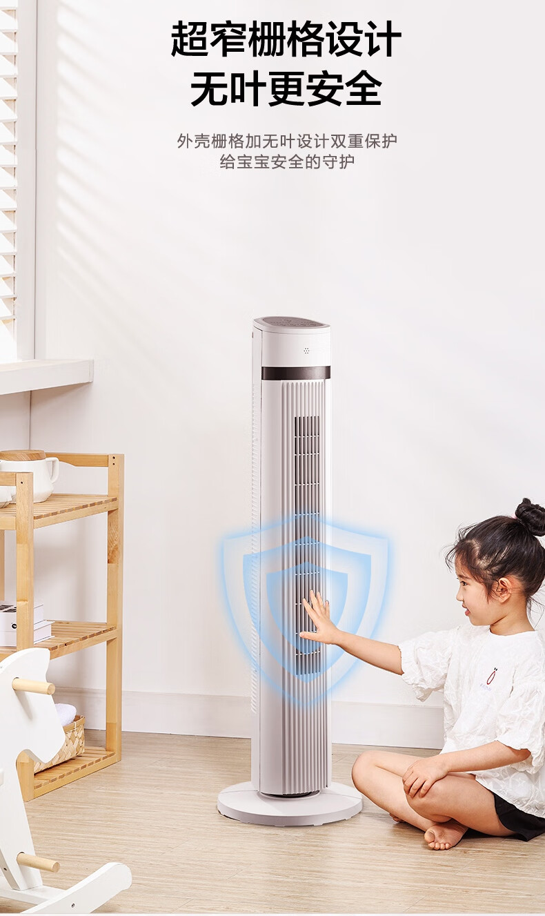 美的/Midea ZAE09MA 风扇 塔扇立式摇头定时远程控风轻声占地小落地扇节能无叶扇