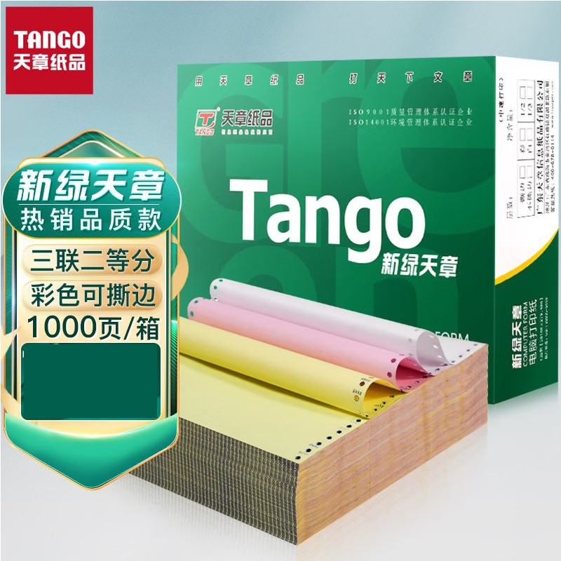 天章/TANGO 241-3-1/2S标签打印纸/条码纸 三联二等分彩色电脑打印纸 1000张/箱