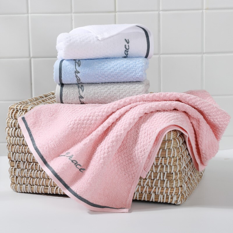 毛巾 纯棉吸水绣花素色柔软洁面巾擦脸巾 单条装 68*34cm 粉色