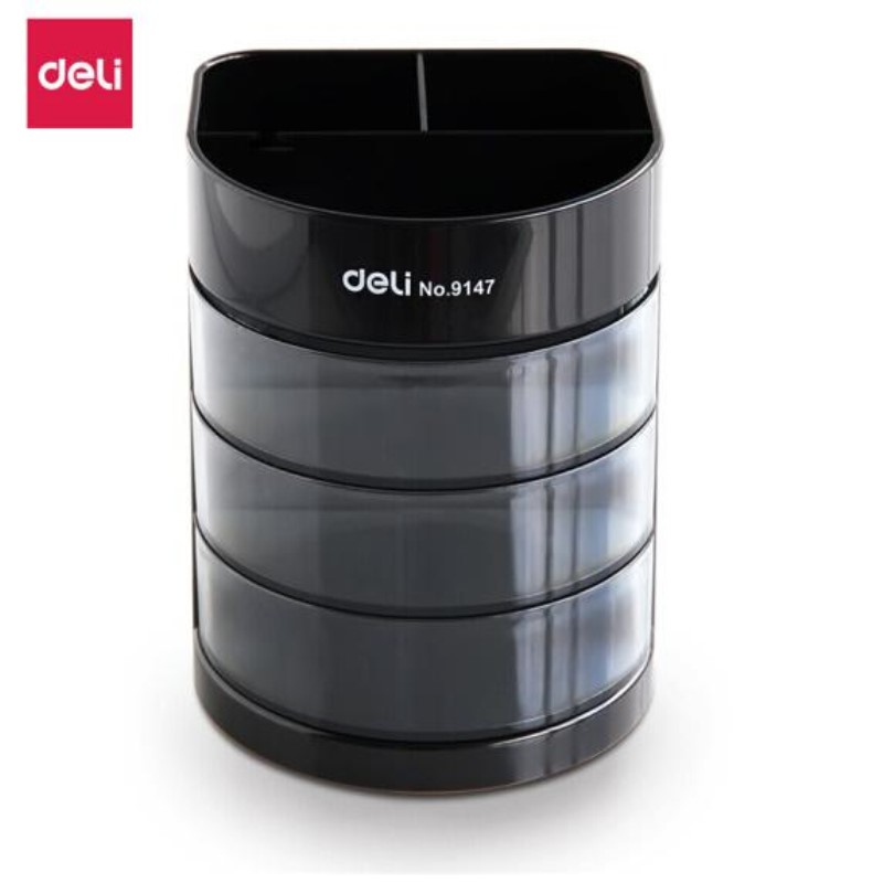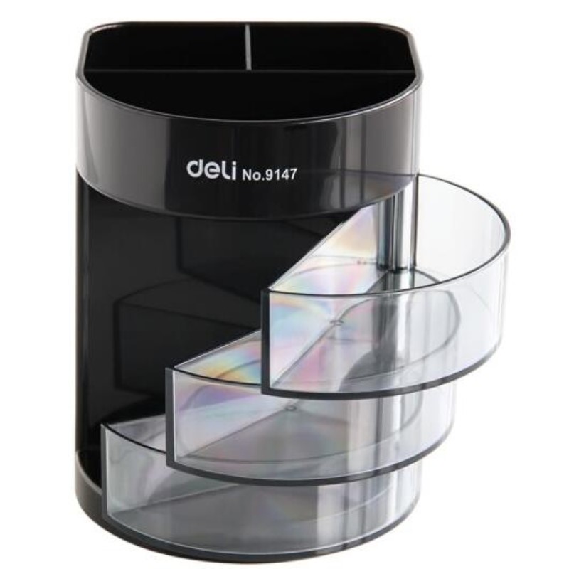 得力DELI 9147 笔筒 三层多功能笔筒(黑)